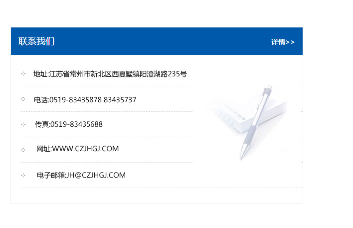 地址:常州市新北區友邦商務大廈1幢16、17層  電話:0519-85101652  傳真:0519-85112595  郵編:213022  網址:www.cz-jiayue_cn.liangxupv.com  郵箱:xiajifengaa@163.com